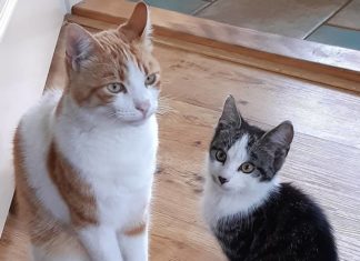 Cat Takes a Hungry Stray Kitten Under His Wing So The...