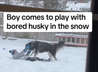 Heartwarming Video Shows a Boy Playing With a Bored Husky in...
