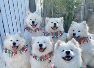Meet the Group of 6 Samoyeds Who Love Smiling for Pictures