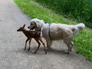 Watch Brooks the Golden Retriever Befriend a Baby Fawn During a...