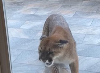Cat Faces a Mountain Lion and Scares it Away