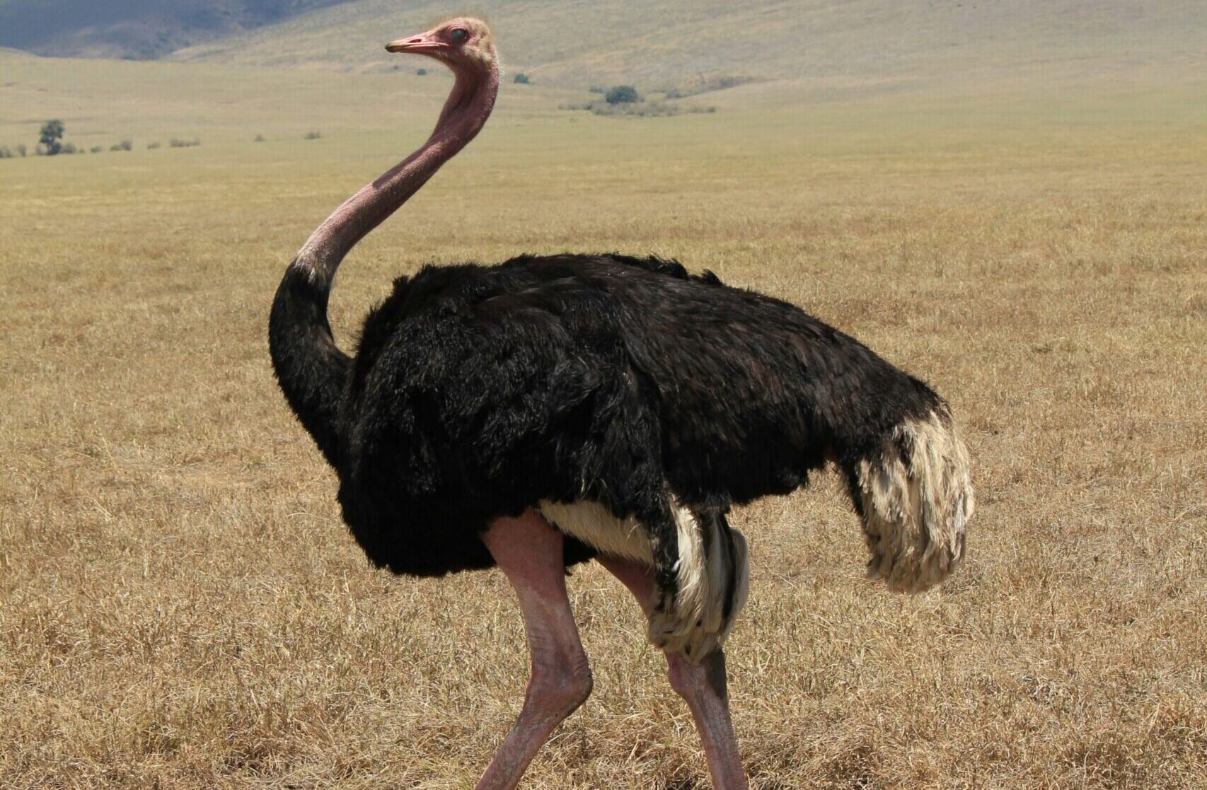 The signs of fear in ostriches are completely different. When faced with danger, they’ll try to blend into their surroundings in an attempt to become a lesser target. If they sense predators they can’t outrun, they’re prone to flopping to the ground, lowering their heads, and remaining still until the danger passes.